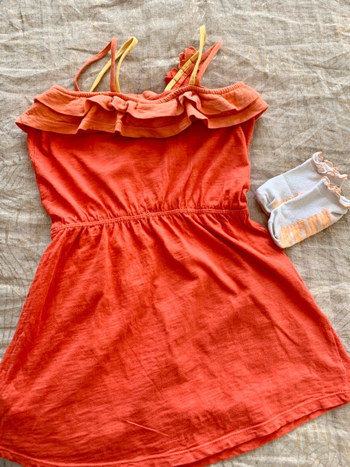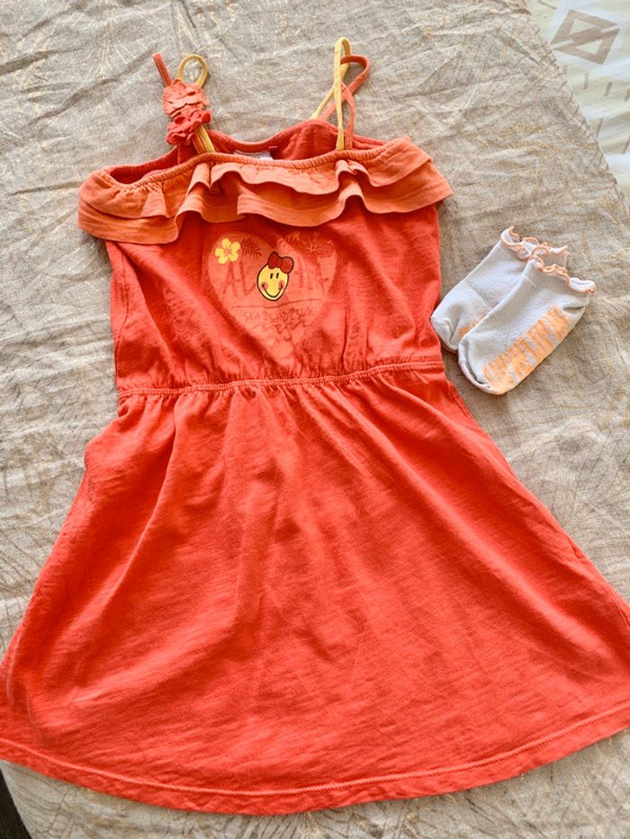 magnifique robe qui donne la pêche ! jolie finition sur la bretelle originale avec le smiley ! je rajoute les chaussettes assortie 😉 n’hésitez pas à aller sur mon dressing je propose de nombreux ensembles 😊 vous bénéficier de réductions et économiser sur les frais de port😉