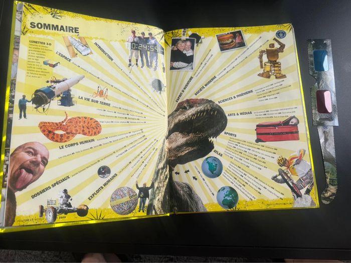 Livre Le mondial des records 2009. Avec images en 3D . Très bon état . Lunettes 3D fournis avec mais il manque une branche dessus . D’autres en livres en vente dans mon Vinted .