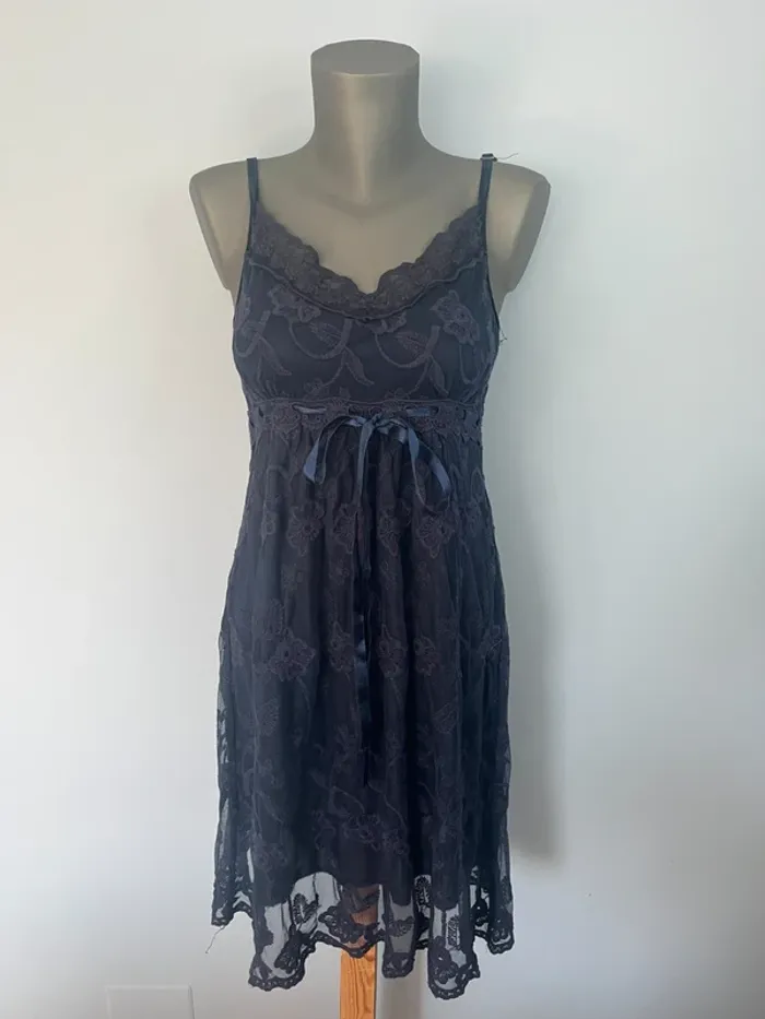 Robe courte bleu foncé Molly Bracken taille TU – dentelle élégante, bretelles réglables - photo numéro 1