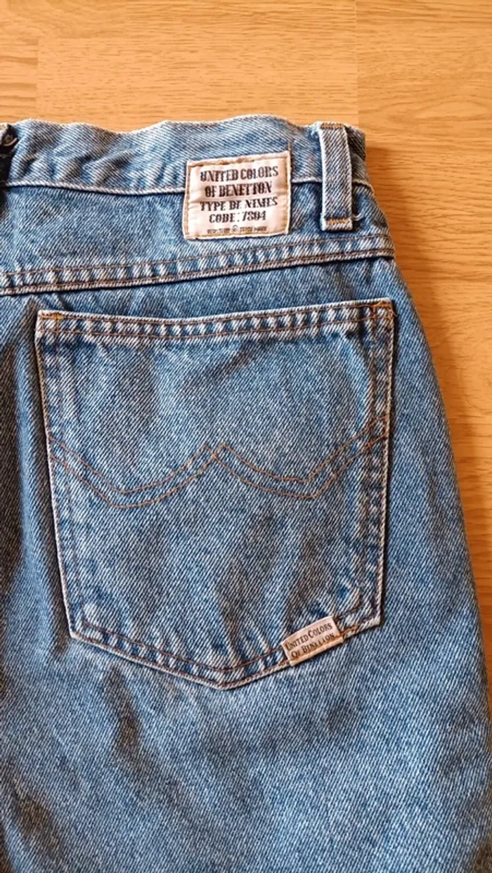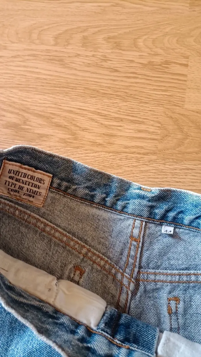 Short en jeans Marque Benetton Vintage, acheté dans les années 80 . A l'origine c'était un pantalon, il a été coupé . Étiquette taille 44 mais correspond à un 36 (voir photo)