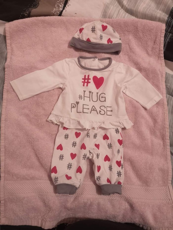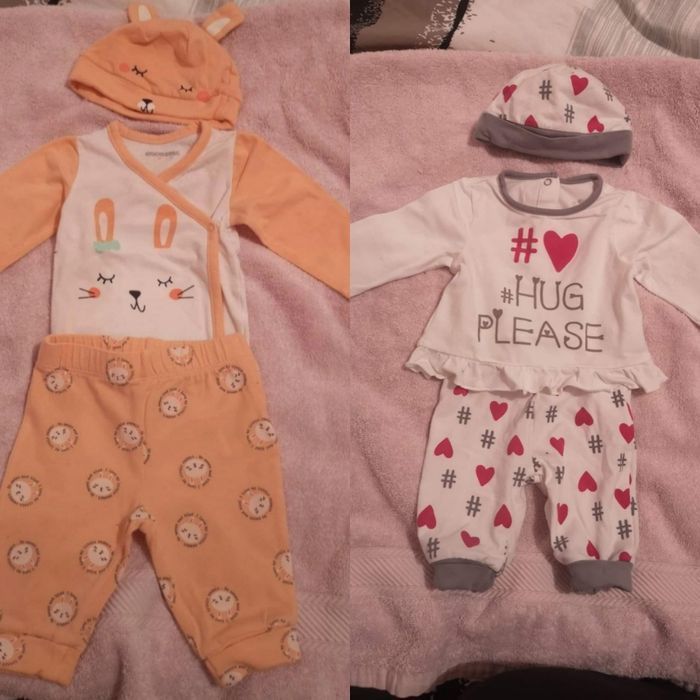 Lot de 2 ensemble taille un mois comprennant : 2 bonnets Un body Un tshirt manche longue 2 pantalons
