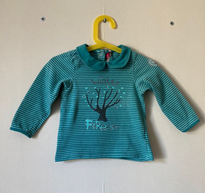 haut manches longues rayé imprimé forêt d'hiver taille 23 mois - photo numéro 3