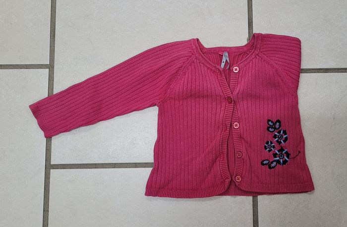 Gilet de couleur fuschia, de la marque Orchestra, taille 23 mois (86 cm), en très bon état. Article lavé pour la vente.