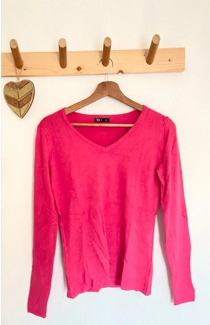 • Pull rose col V - Neuf - Taille s 🧡 #femmebrigitte