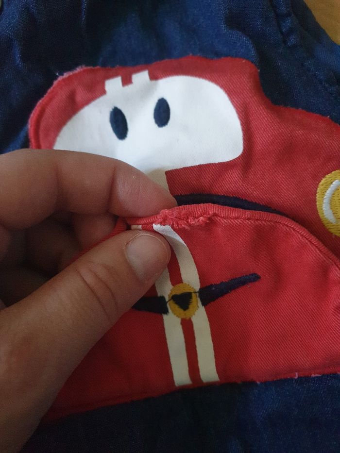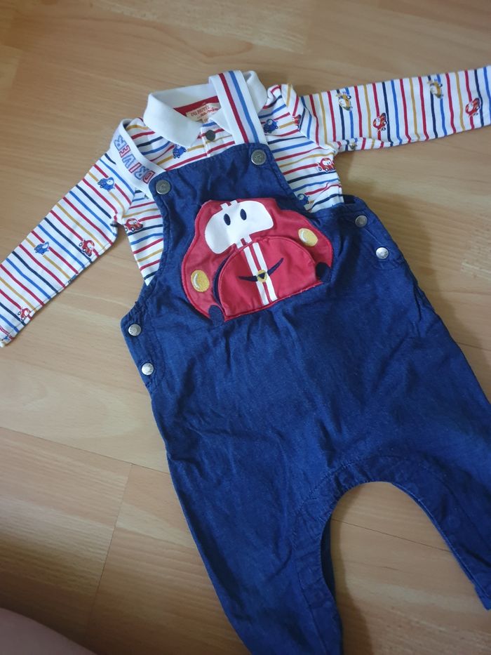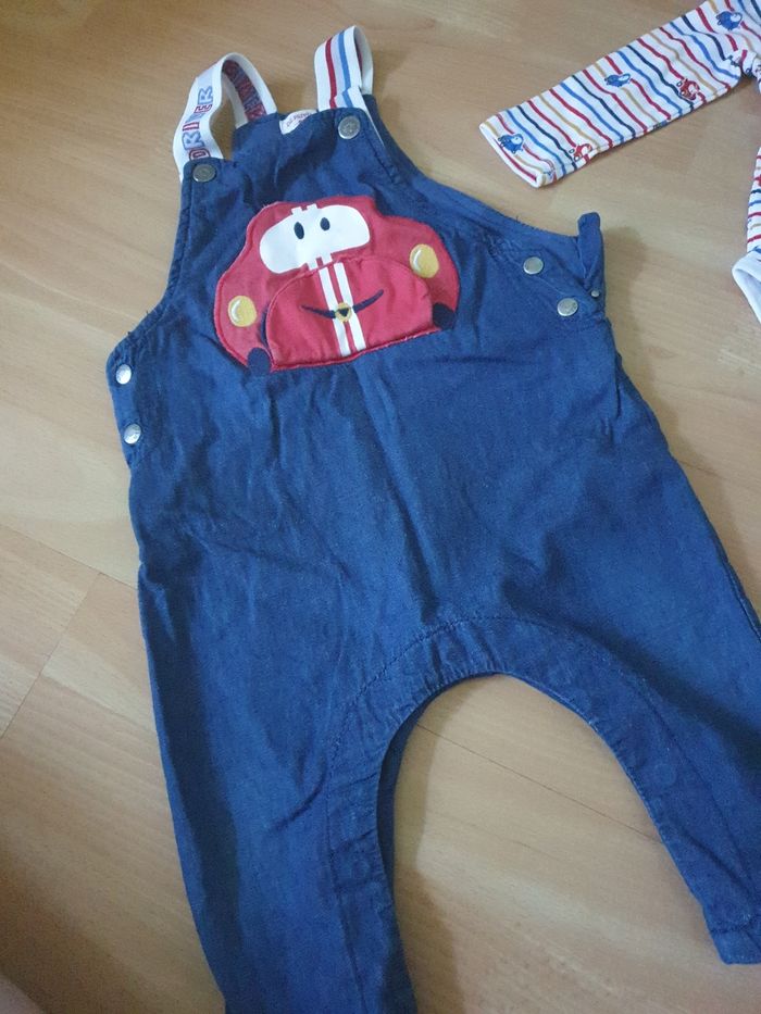 Ensemble salopette + body Manche longue, il y a un accros sur le bonhomme rouge voir derniere photo