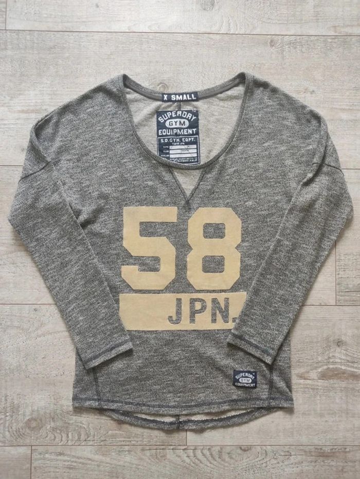 Sweat manches longues gris motif velours beige taille XS Superdry - photo numéro 1