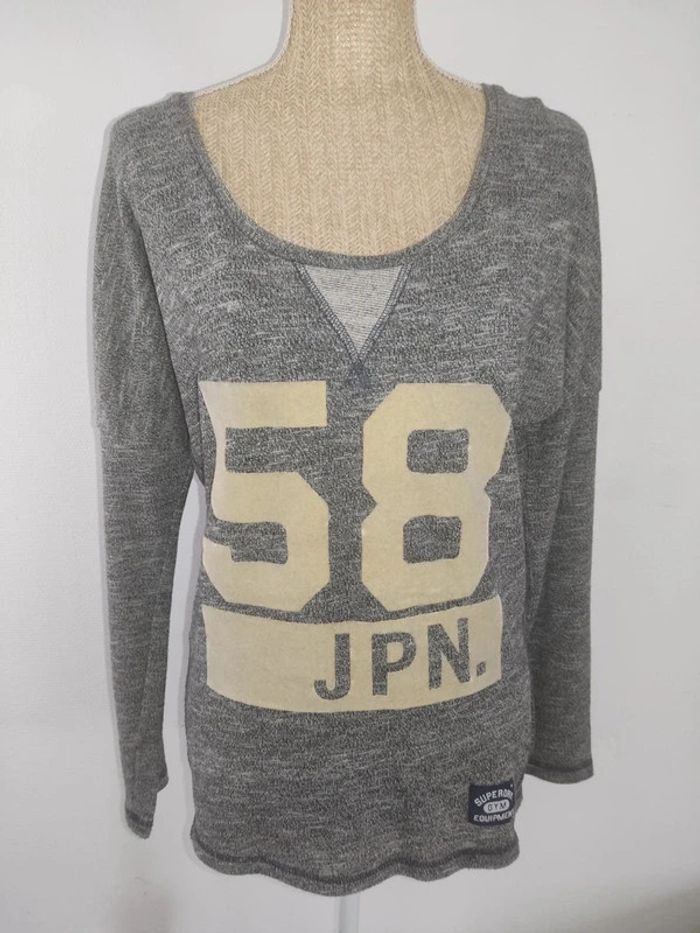 Sweat manches longues gris motif velours beige taille XS Superdry - photo numéro 2