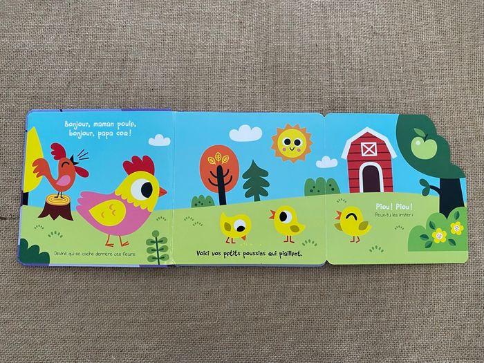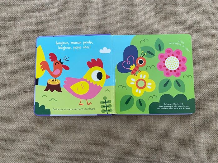 Un adorable livre d’éveil pour accompagner les tout-petits dans leurs premières découvertes ! Avec ses images colorées et ses volets à soulever, Coucou les bébés invite l’enfant à jouer à cache-cache avec les animaux et à développer sa curiosité. Éditeur : Gründ Collection : Coucou les bébés Format : cartonné, facile à manipuler par les petites mains Âge recommandé : dès 6 mois Type : livre d’éveil à volets État de l’article Occasion, en bon état. Points forts Livre interactif qui stimule l’éveil et la motricité fine Illustrations douces et attractives pour bébé Solide et parfaitement adapté aux petites mains Marque reconnue dans l’univers jeunesse : Gründ gründ4