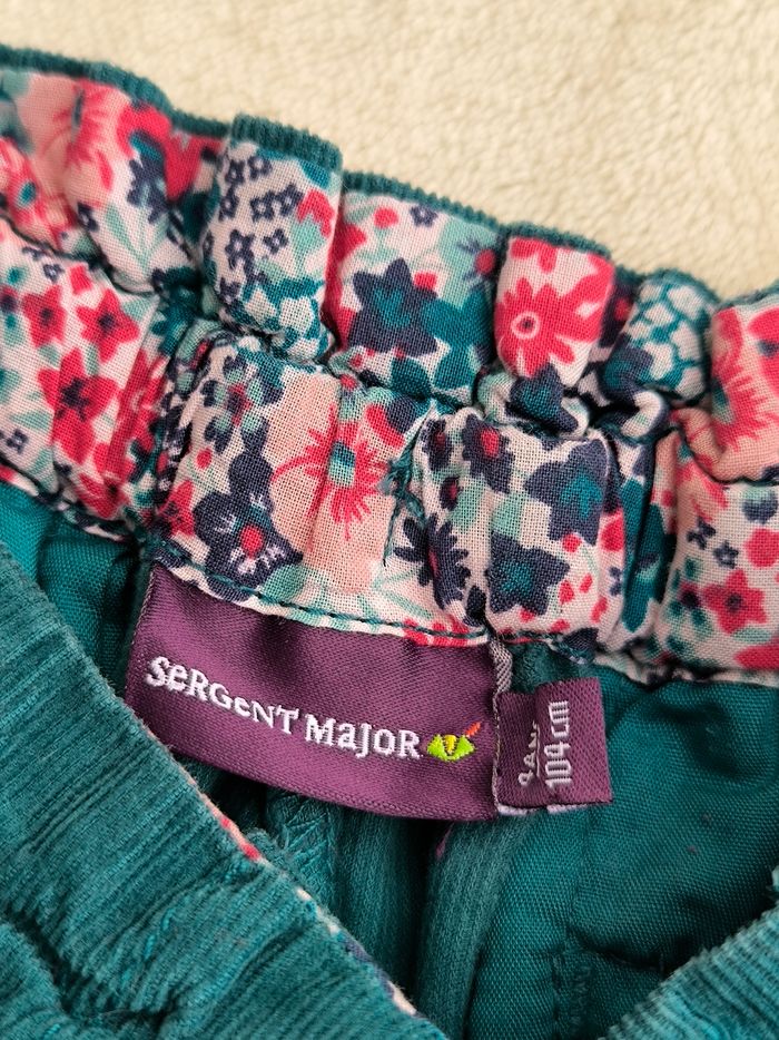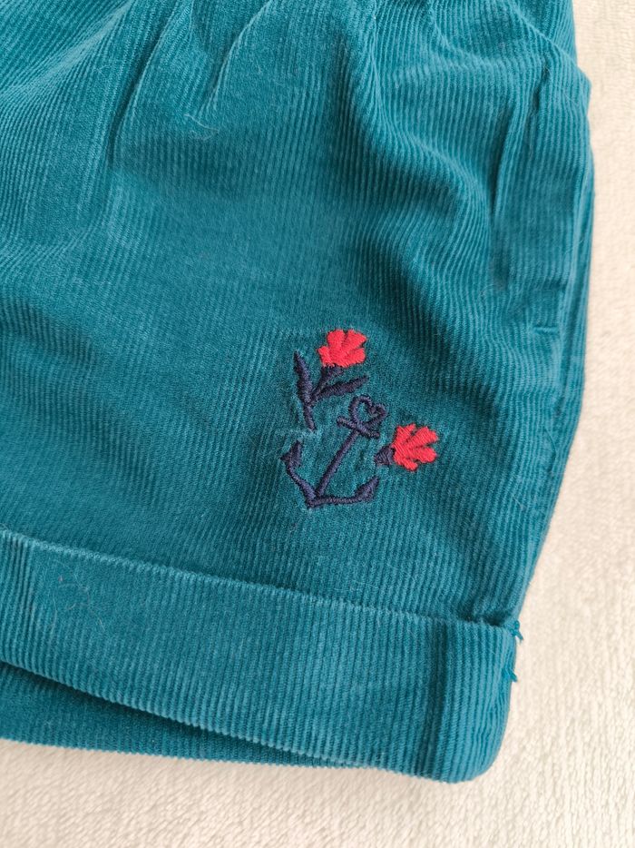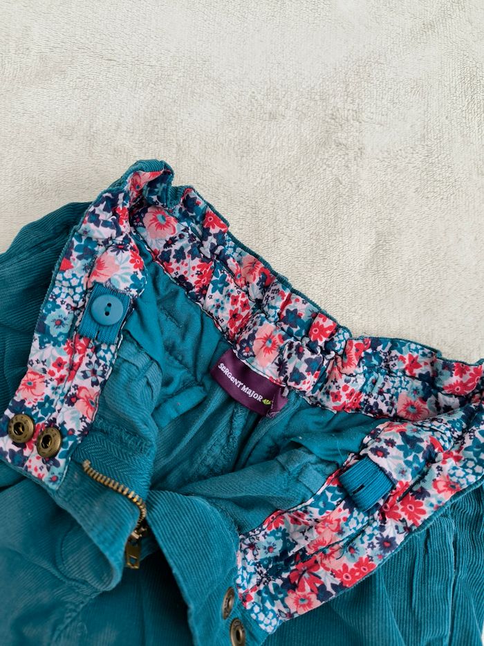 Short d'hiver Marque Sergent Major Taille 4 ans, 104 cm • Coloris bleu canard • Broderies et imprimés fleurs • Velours côtelé, doux • Fermeture par fermeture éclair et pressions • Taille élastique ajustable • 2 poches arrières Peu porté, en très bon état #evelyne_filles_4ans #evelyne_filles