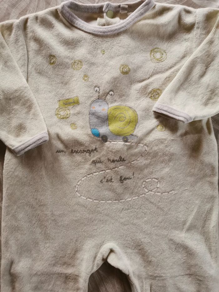 Joli pyjama vert clair motif escargot 12 mois Porté mais en bon état