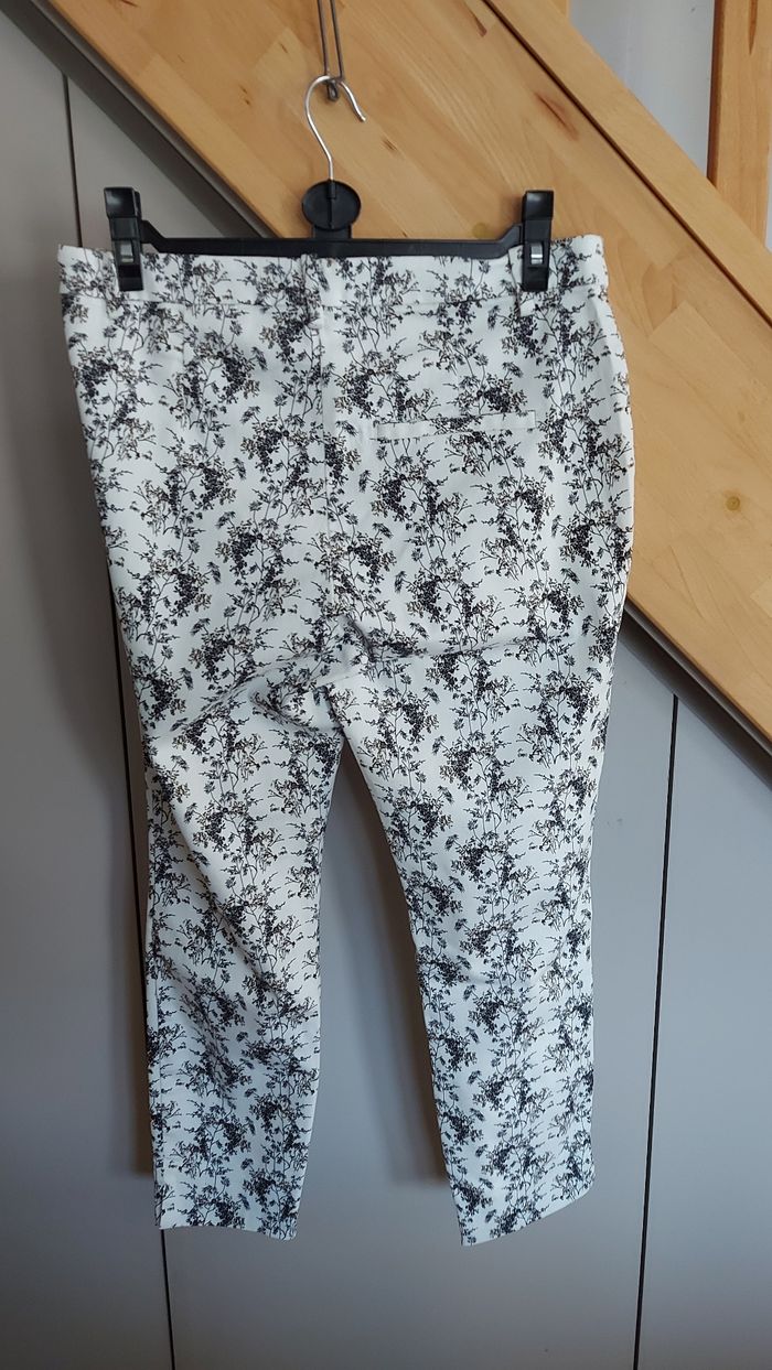 Pantalon blanc motifs noirs, coupe 7/8 Tirette de fermeture sur le côté, stretch H&M Taille 42 TB état