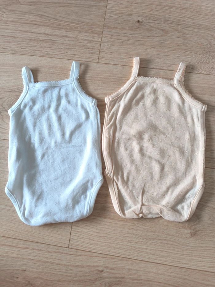 Lot de 2 bodies bretelles FPC blanc et abricot - Taille 9-12 mois 74cm - photo numéro 1