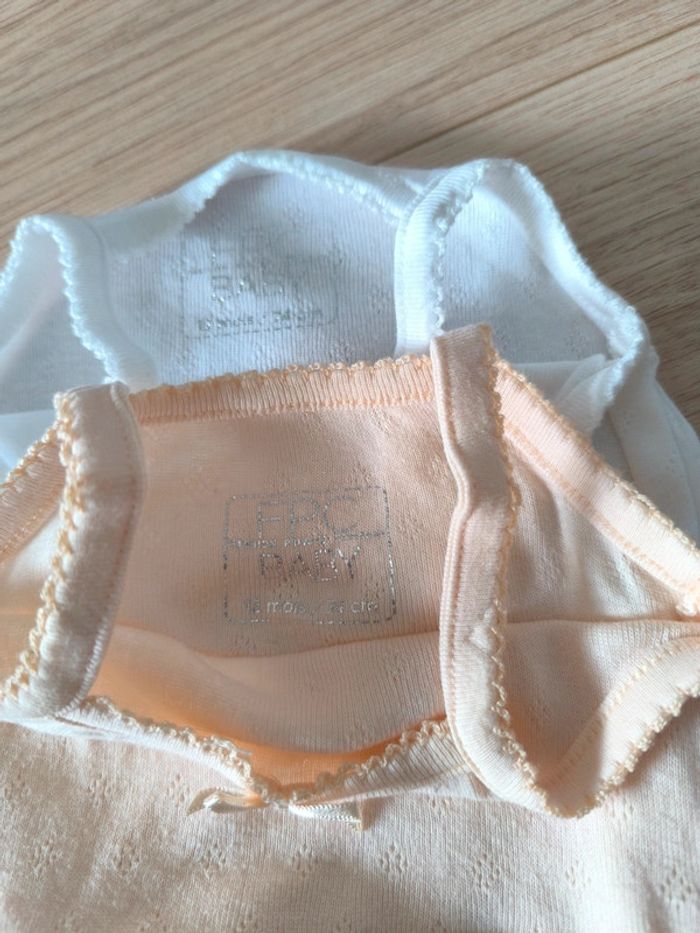 Lot de 2 bodies bretelles FPC blanc et abricot - Taille 9-12 mois 74cm - photo numéro 3