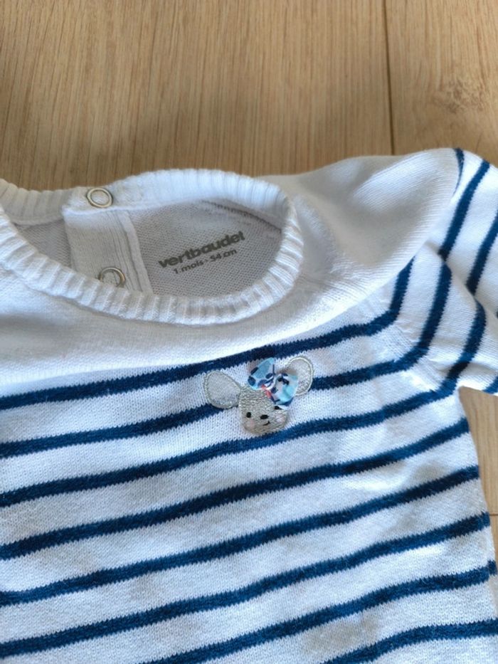 Ensemble Vertbaudet fille pull marinière motif souris + pantalon léger/legging bleu marine En très bon état Taille 1 mois - 54 cm #titine3186_fille_naissance_1mois