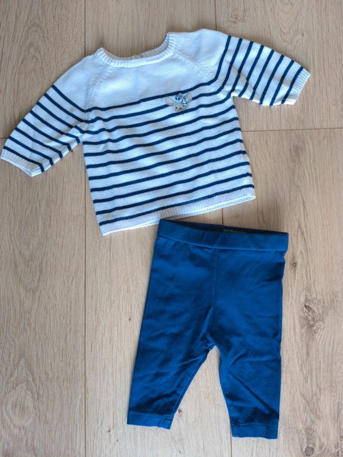 Ensemble Vertbaudet fille pull marinière + pantalon/legging bleu marine - Taille 1 mois + 54 cm