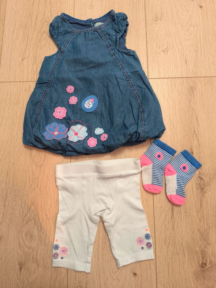 - 1 ensemble robe jean souple à fleurs + legging court + chaussettes Orchestra
