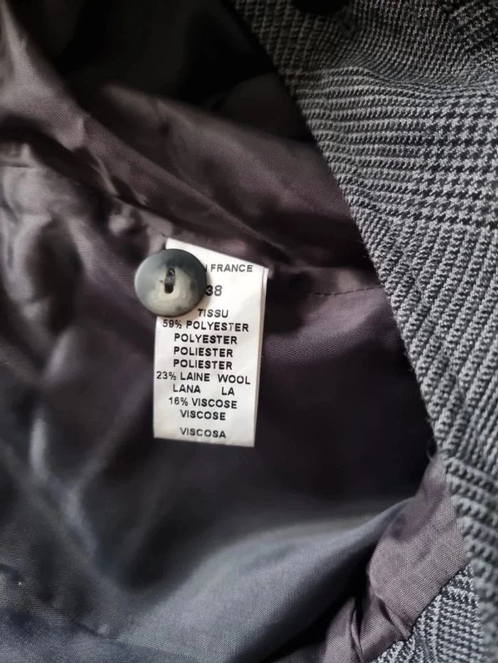 37 cm à plat à la taille 65 cm de longueur 47 cm à plat au niveau des hanches Boutonnée devant 2 fausses poches Entièrement doublée Portée une fois