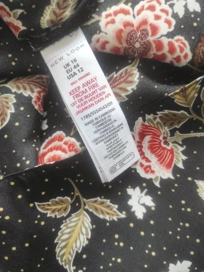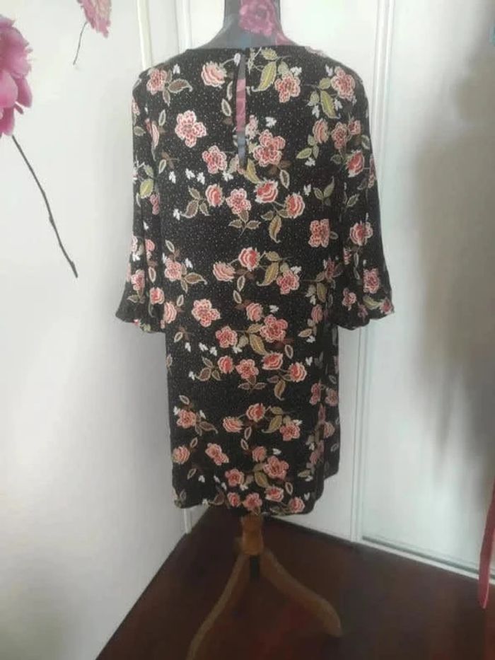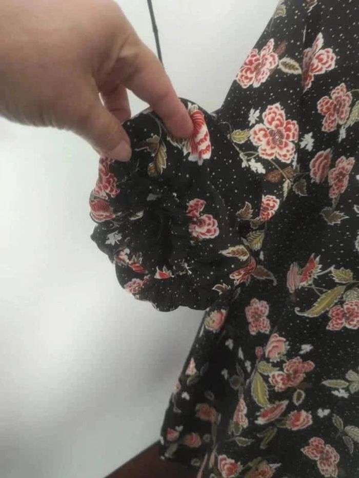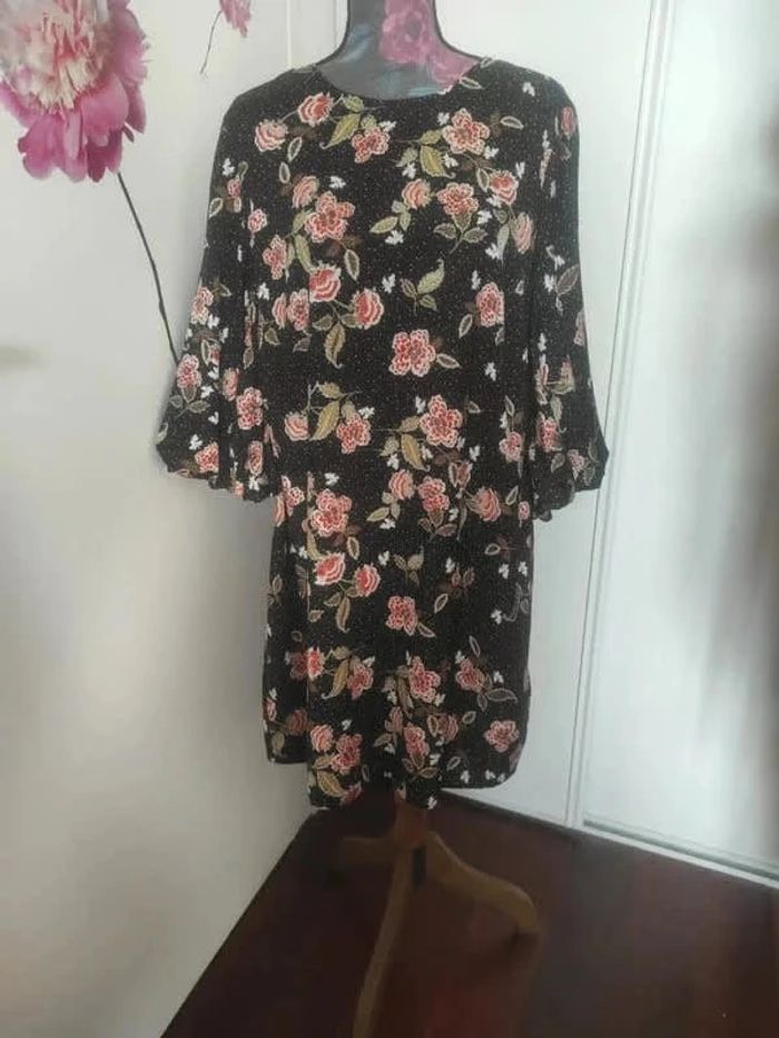 Manches 3/4 ballon Tissu satiné tout doux Infroissable, ne se repasse pas Motifs à fleurs 56 cm d'aisselle à aisselle 92 cm de longueur totale Neuve jamais portée