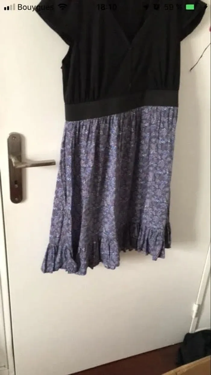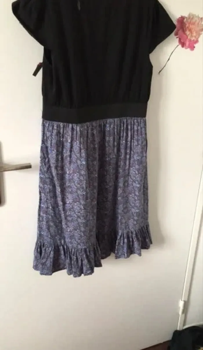 très légère et agréable à porter motif fleurs liberty et petit volant dans le bas et haut en coton genre tee shirt 87 cm de longueur totale élastique large à la taille très peu portée état neuf