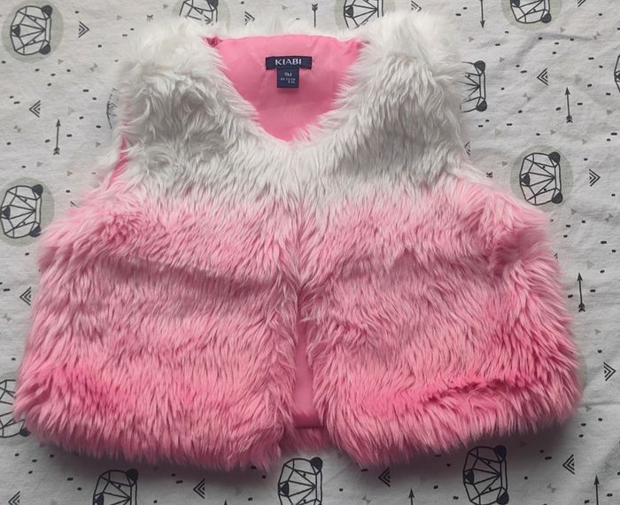Gilet sans manches rose/blanc en très bon état de la marque Kiabi pour fille taille 9 mois