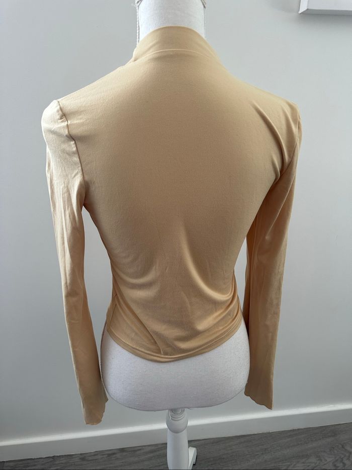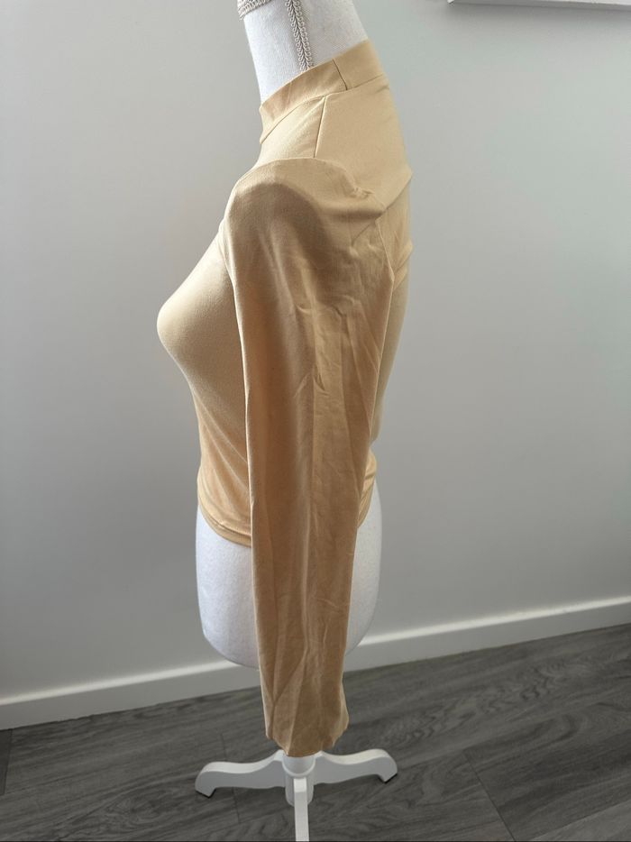 T-shirt à manches longues crop top beige T36 S - photo numéro 3