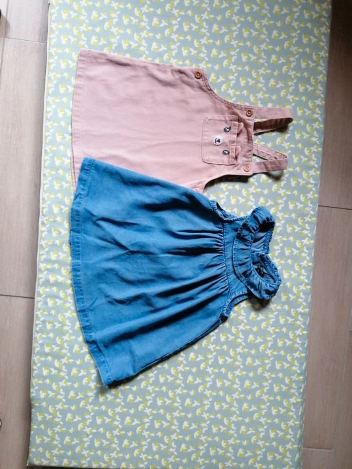 Lot de 2 robes 18 mois 1 H&M vieux rose avec bretelles ajustables 1 kiabi style denim fluide fermeture boutons tout le long du dos Envoi rapide et soigné Maison non fumeur #18mois