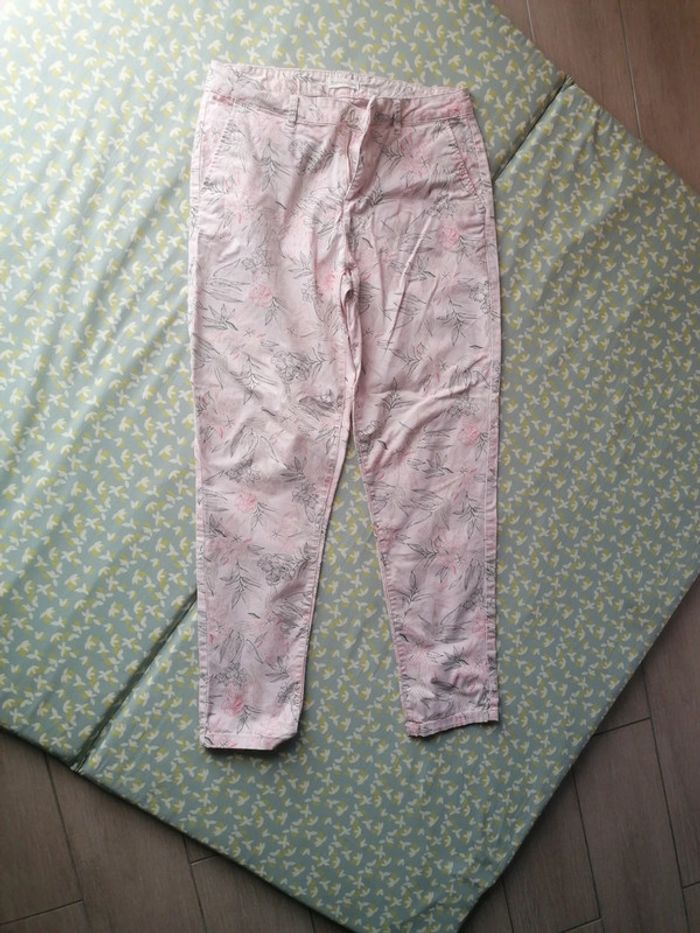 Pantalon rose pâle à fleurs Cache cache taille 34 (convient parfaitement à un 36) Peu porté Maison non fumeur Envoi rapide et soigné
