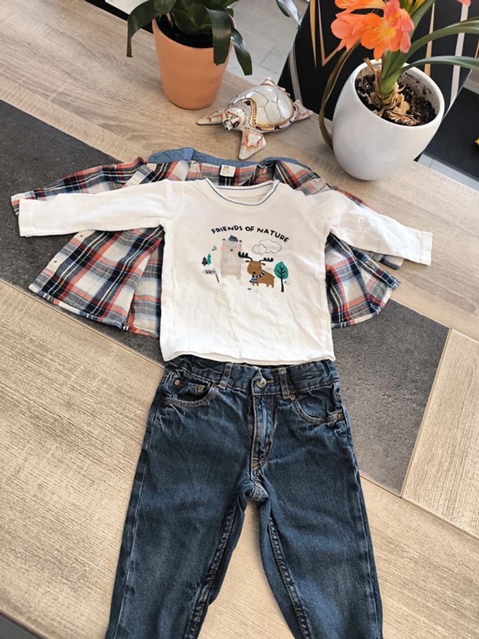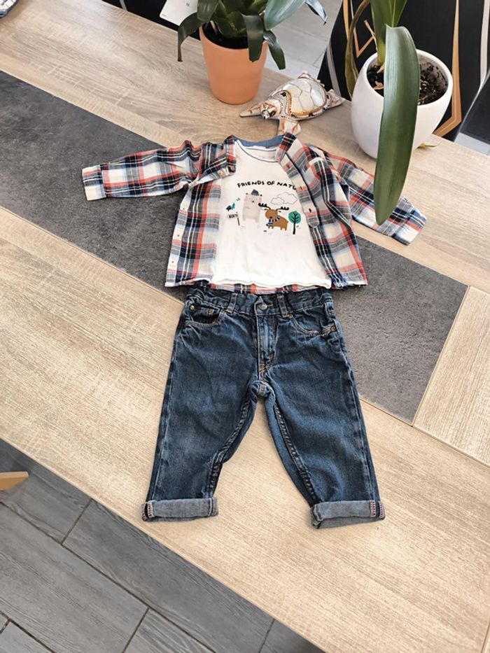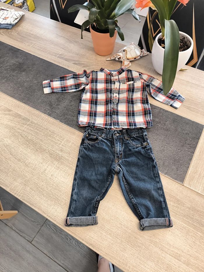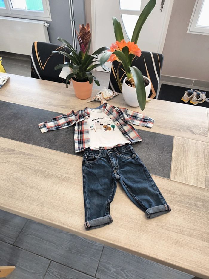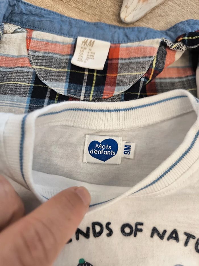 Superbe ensemble 3 pièces garçon taille 9 mois de la marque HM/mots d'enfants en parfait état composé