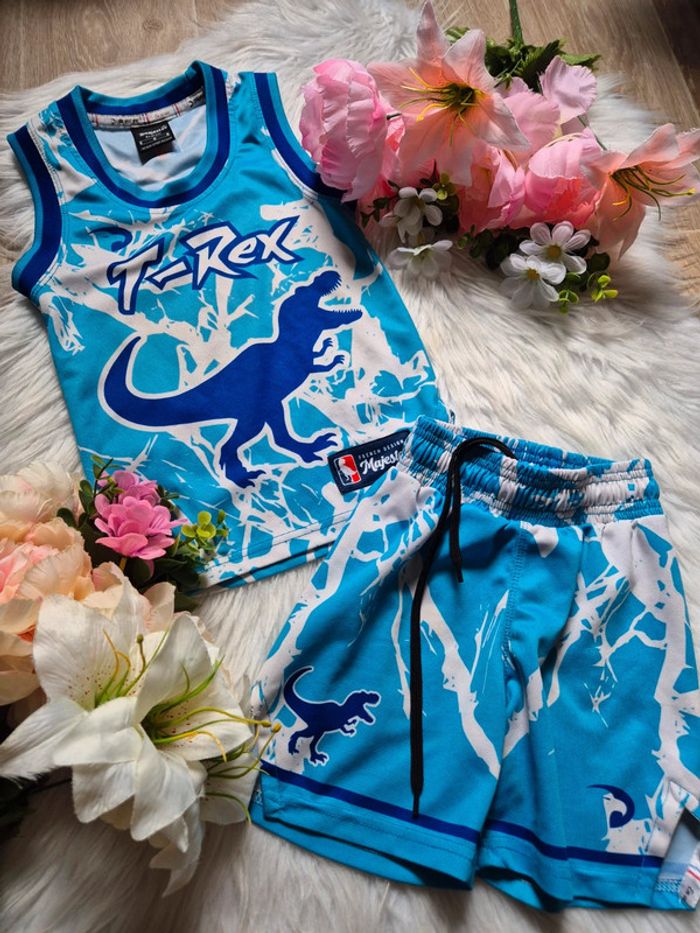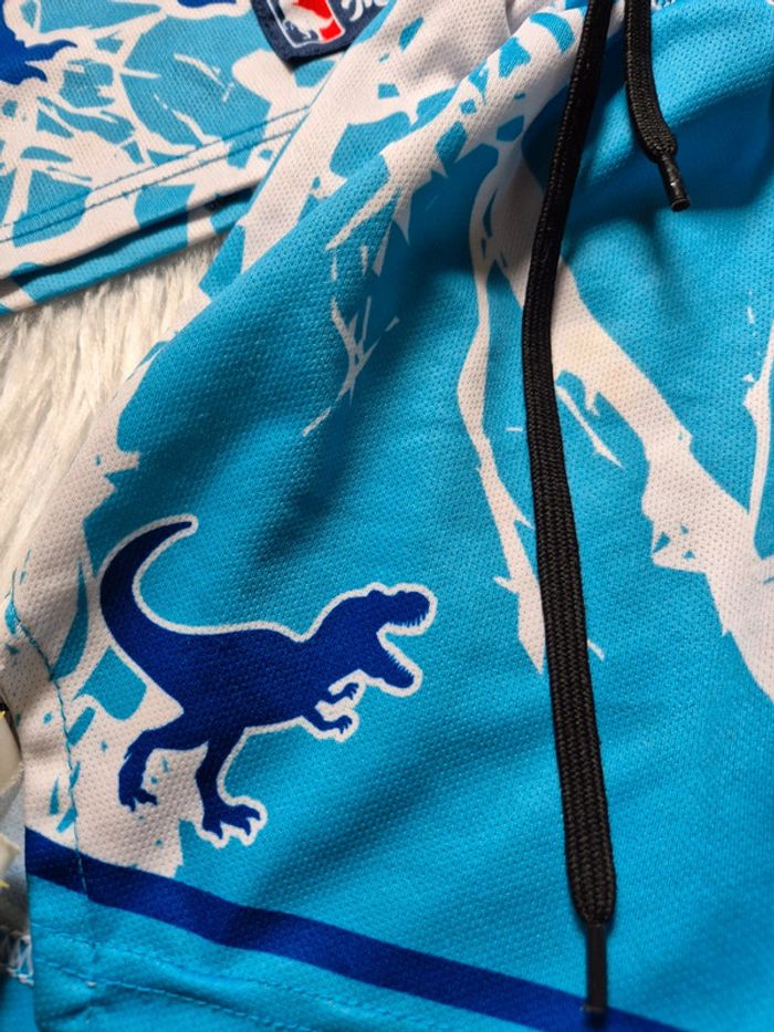 Taille 6 ans • Très bon état ✔️ Imprimé dinosaure bleu et blanc façon basket 🏀 Matière légère et respirante, parfait pour l'été ! 📦 Envoi en petit format pour réduire les frais de port !