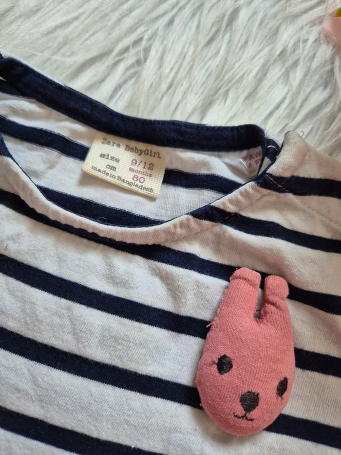 Adorable haut rayé, style marinière, avec petit lapin trop mignon sur la poitrine 🐻 Taille : 9-12 mois (Zara) Très bon état ✔️ 📦 Envoi en petit format pour réduire les frais de port !