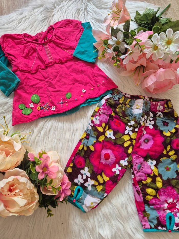 Très bon état ✔️, ensemble haut manches longues et pantalon coloré, motifs floraux et détails brodés 🌸 Des couleurs vives et originales pour un look plein de peps ! 📦 Envoi en petit format pour réduire les frais de port !