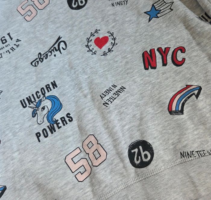 🌸 Pull avec plusieurs motifs 🌸 H&M taille 14 ans 🌸 Très bon état 2€ 📦 Envoi rapide et soigné
