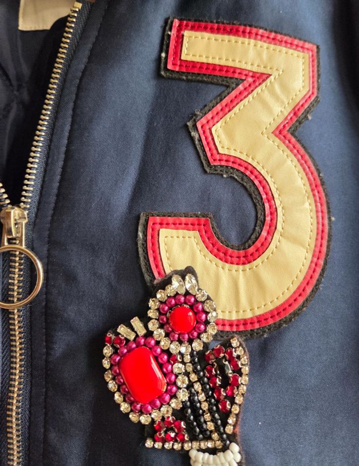 🌸 Blouson style bomber de la marque EDC by Esprit, taille XS. ✨️ En très bon état, porté très peu. 🌾 Couleur bleu marine avec détails brodés sur la poitrine (grand chiffre 3 et broche à strass), fermeture éclair avec anneau, poches pressionnées à l'avant et poche zippée sur la manche. Poignet et bas en bord-côte rayé pour un look sportswear tendance. Idéal pour la mi-saison. 📦 Envoi rapide et soigné ! • Autres articles de la même taille : #XSfemmemeeg1512 #edc #esprit #blouson #bomber #blousonfemme #bleumarine #taillexs #modefemme #streetwear #tendance #instagram #vintedbelgique