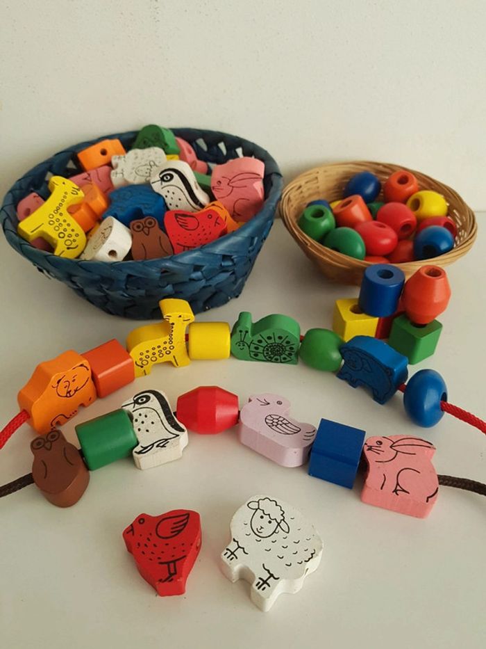 Perles en bois formes, couleurs et animaux - photo numéro 1