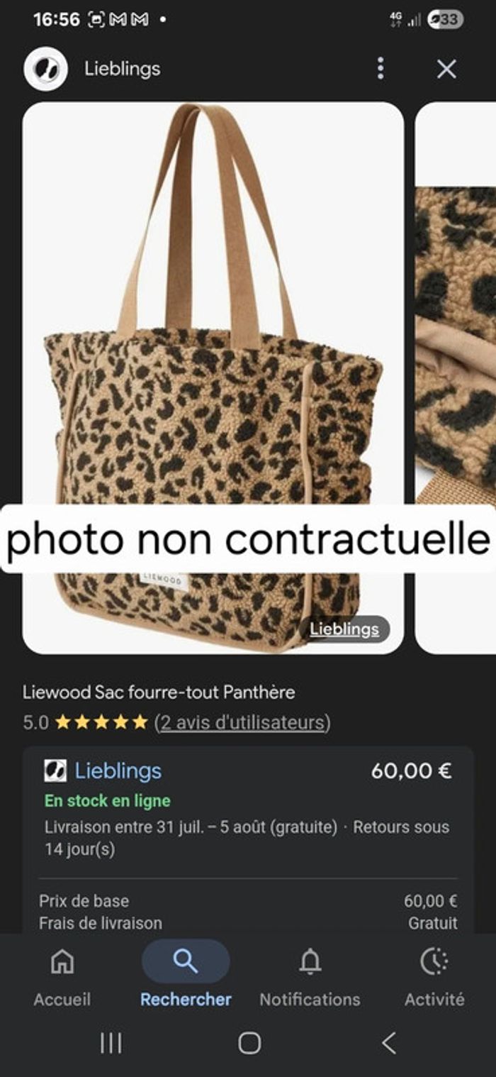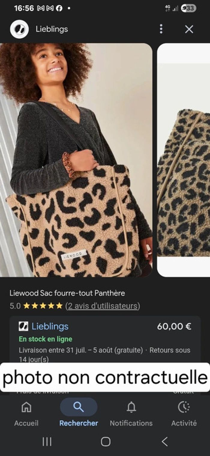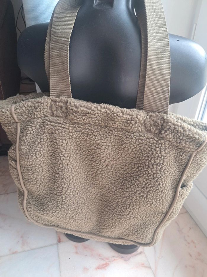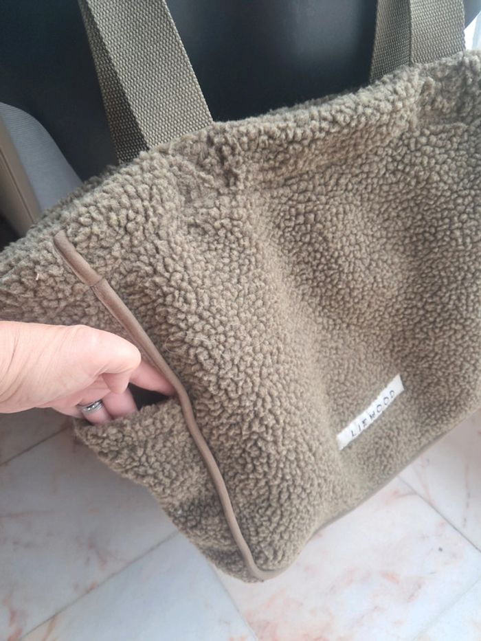 Liewood, très joli grand sac tote bag en peluche kaki en tbe