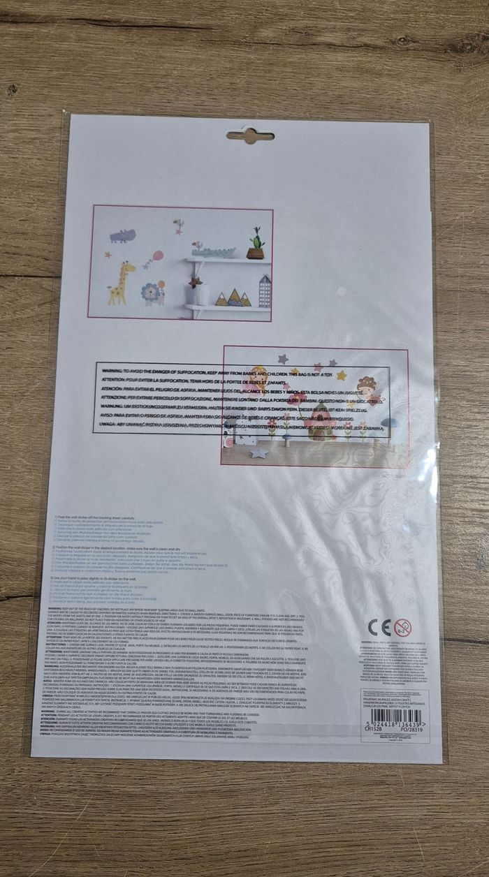 Lot de 6 plaquettes de stickers muraux animaux pour chambre d'enfant Neufs sous blister