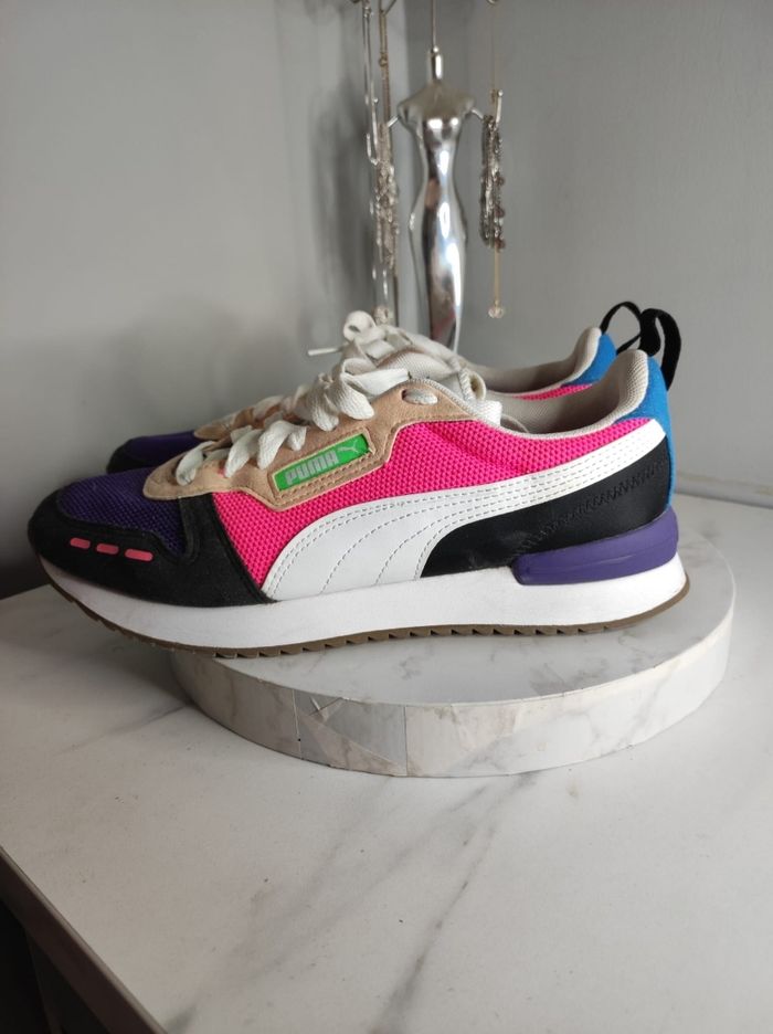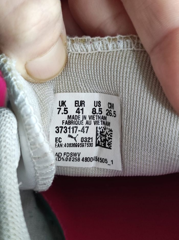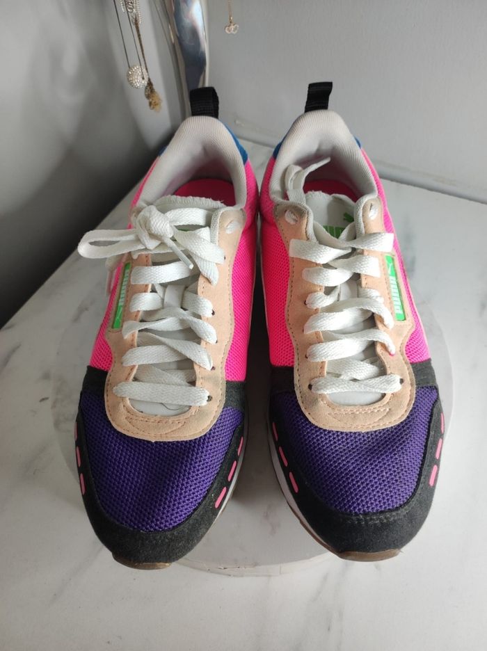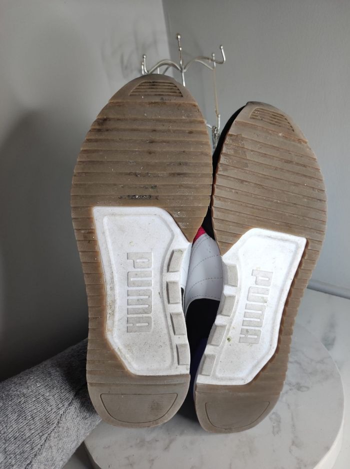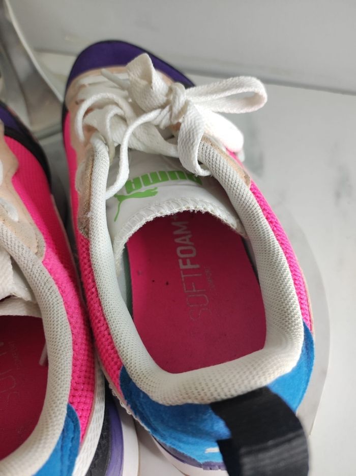 Baskets puma semelles soft foam taille 41. les baskets ont à peine été portées 3 fois. Elles sont en parfait état, juste au niveau de la couleur saumon, avec les frottements des autres chaussures dans le meuble, elles se sont légèrement décoloré (cf photo).