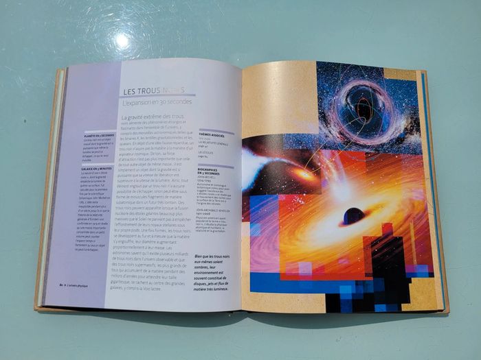 De tout temps, l'Univers a fasciné l'humanité. Au fil des millénaires, l'homme a pris conscience de sa place infime dans cette immensité potentiellement infinie, qui s'étend bien au-delà de notre système solaire. En contemplant planètes, étoiles, nébuleuses et galaxies, il a appréhendé ce monde vertigineux et élaboré des théories qui, malgré leur base scientifique solide, peuvent sembler incroyables ! Cet ouvrage de "vulgarisation intelligente" conçu par des scientifiques - spécialistes d'astrophysique, d'astronomie et de physique - explique avec clarté et simplicité tous les phénomènes fascinants du cosmos : les trous noirs, les quarks, le boson de Higgs, les multivers, le principe d'incertitude... et, bien sûr, l'origine de notre monde et son avenir. Il explore les grandes théories cosmologiques et met en lumière les découvertes les plus récentes sur l'Univers, l'infini, la vie. Chaque sujet est présenté en 30 secondes, 2 pages, 300 mots et 1 image, soit 3 minutes pour tout comprendre ! Que vous soyez simple curieux, passionné d'astronomie ou scientifique chevronné, cet ouvrage vous procurera, tour à tour, étonnement et émerveillement...