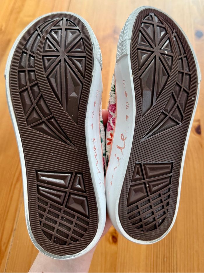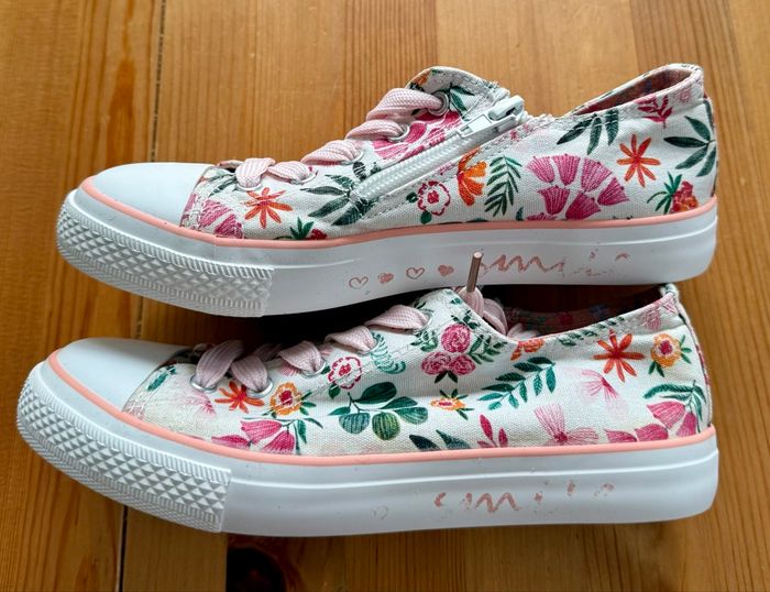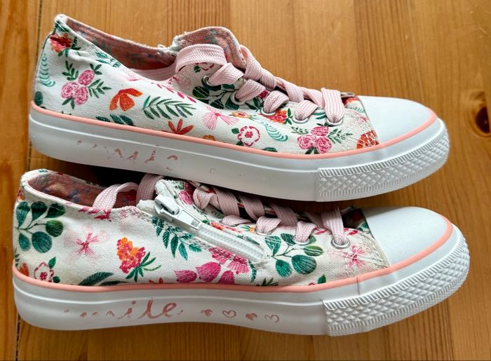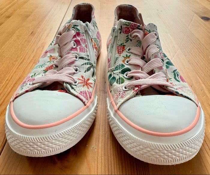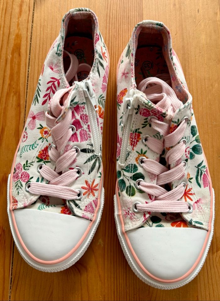 Motifs: fleuri Lacets + fermeture Éclair Écritures partiellement effacées sur le contour des chaussures Pointure 35