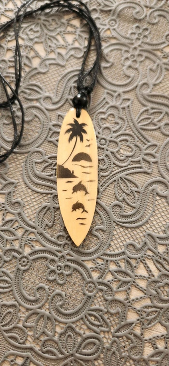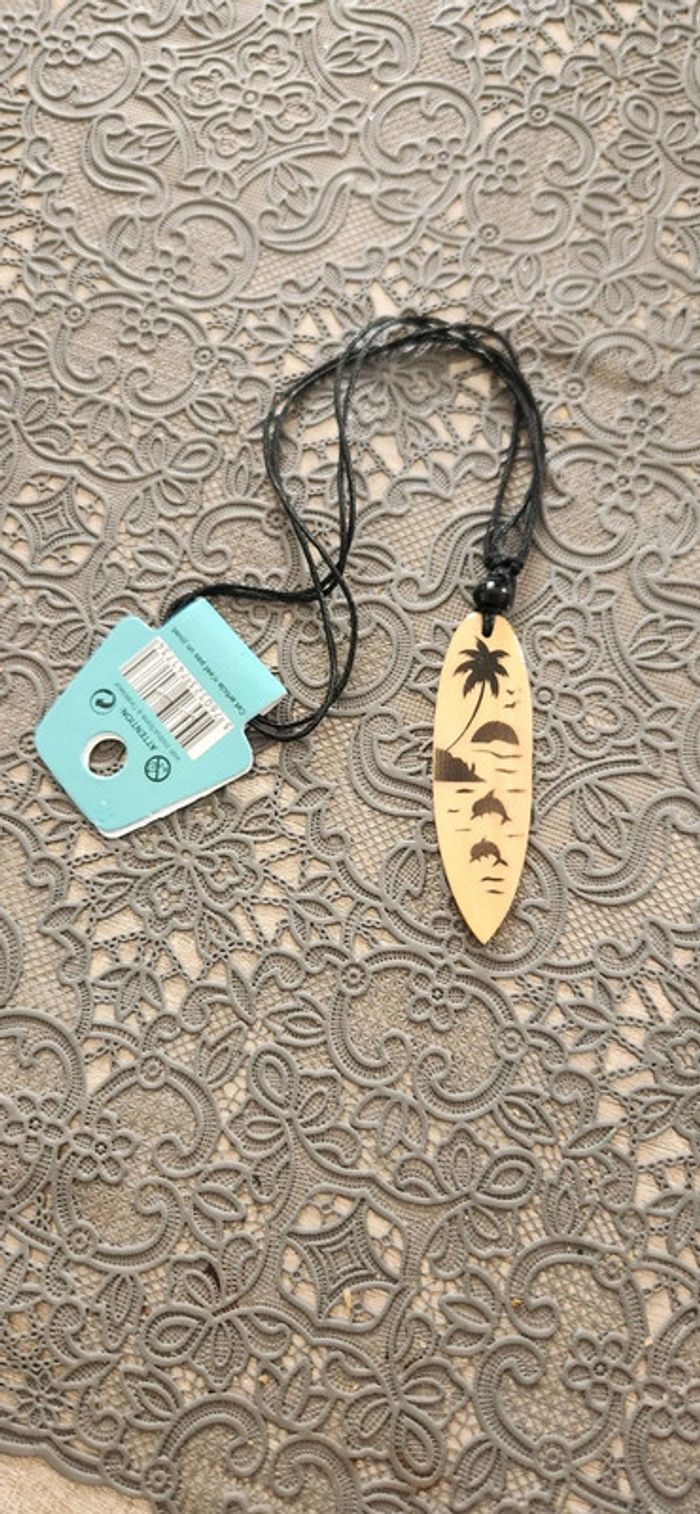 Collier planche de surf bois