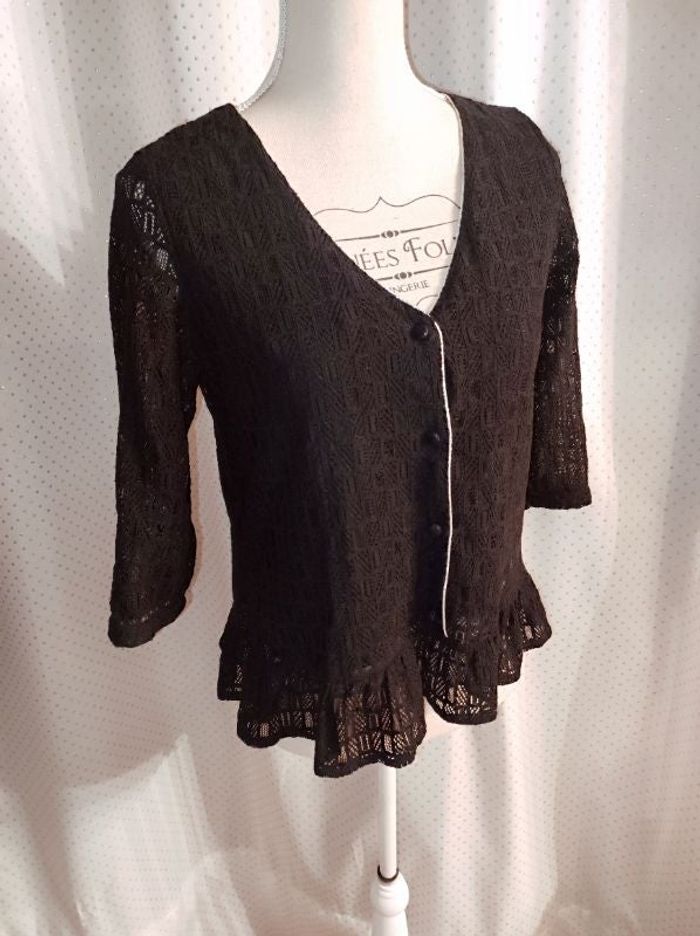 Blouse en dentelle noire. Liseré doré. Manches 3/4. Marque Y'COO Taille S TBE