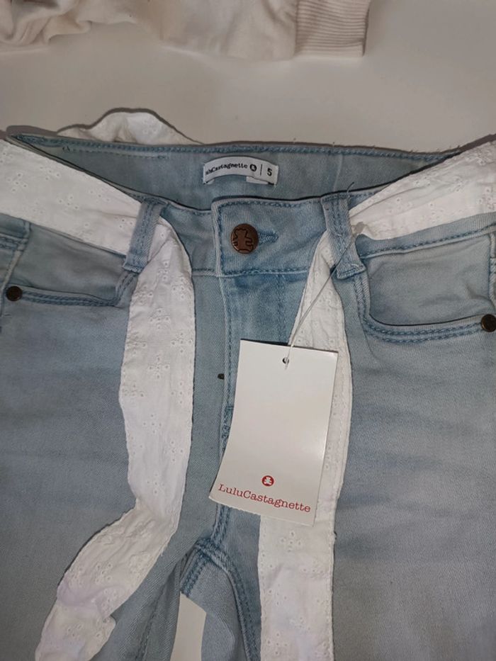 Jeans Lulu castagnette avec sa ceinture blanche brodée 5 ans Neuf étiquette