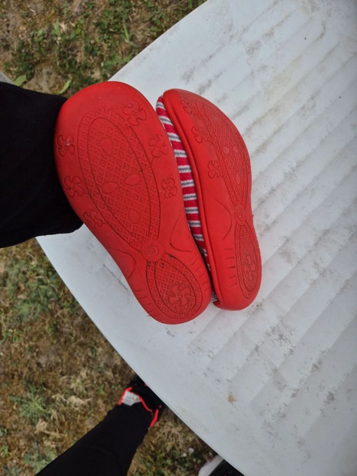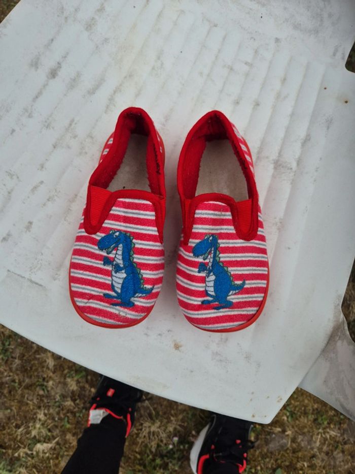 Vends chaussons rouges à rayures motif dinosaure Pointure 39 #juhjuhchaussures