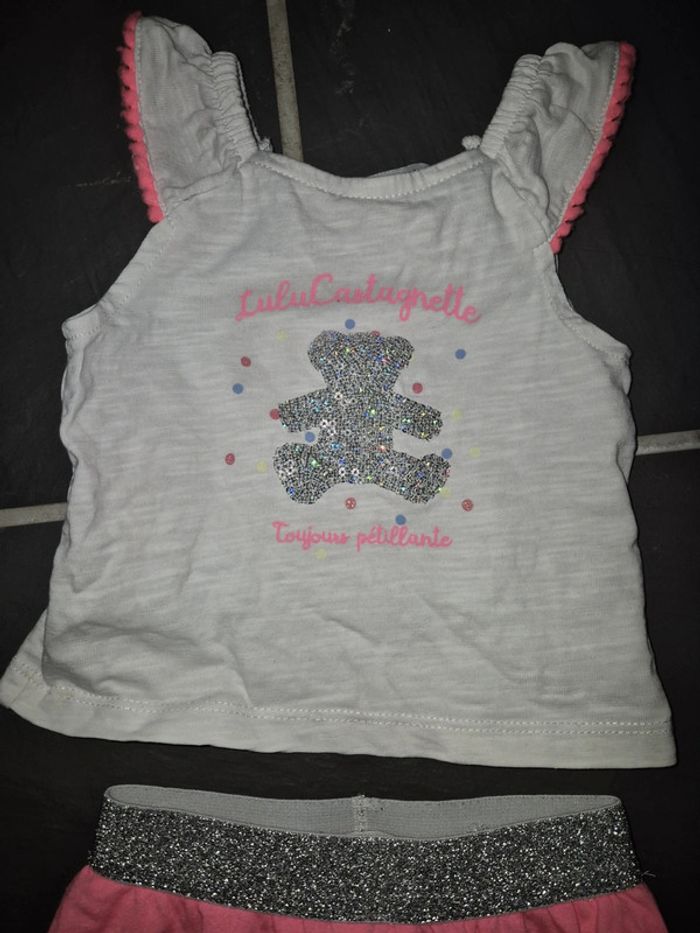 Vends ensemble fille 6 mois Lulu castanette Jupette et leggings + t shirt a sequins #juhjuh6mois