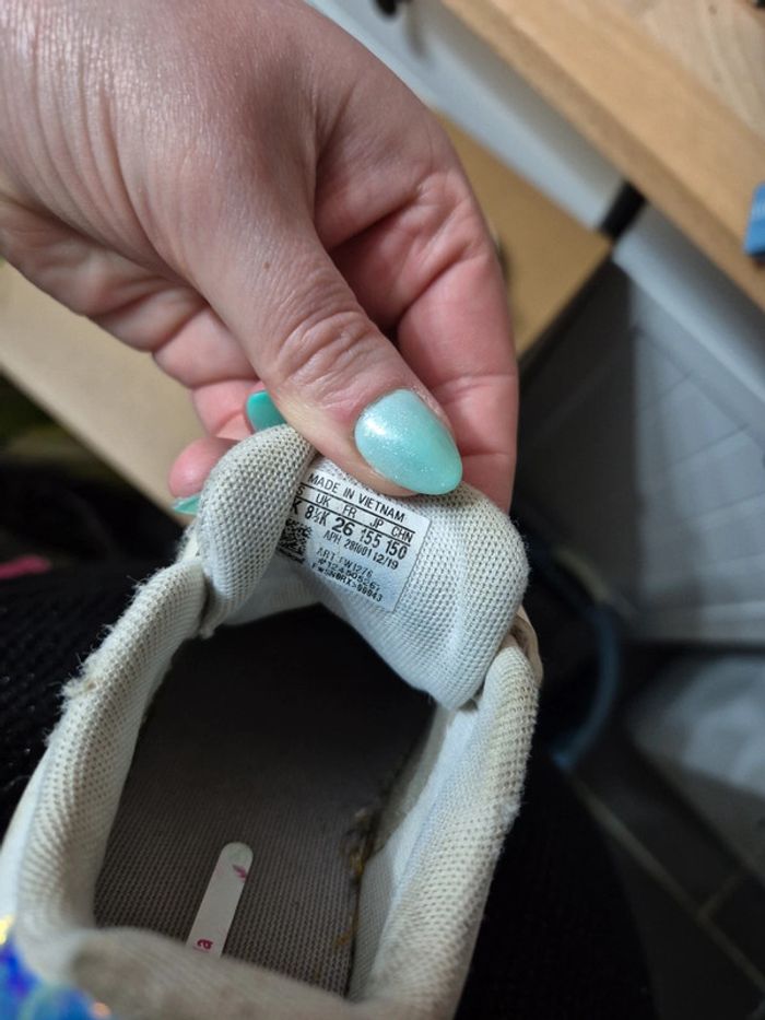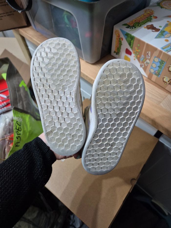 Vends adidas blanches Bandes rose arc en ciel licorne Pointure 26 Abîmé au bout #juhjuhchaussures