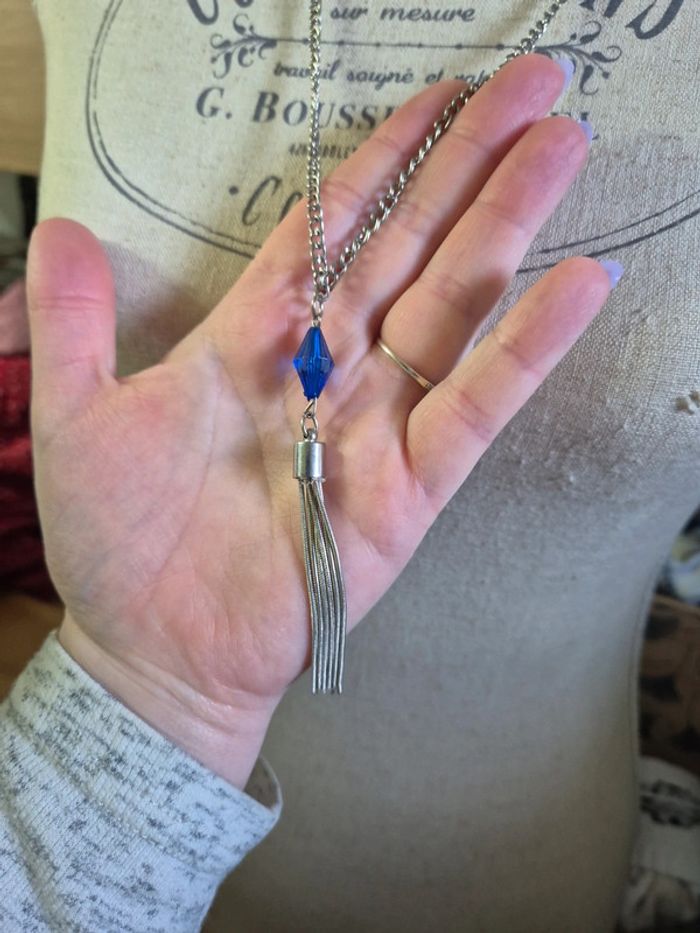 Vends collier sautoir argenté mong pierre bleu #juhjuhbijoux