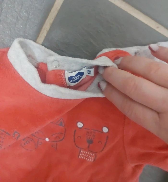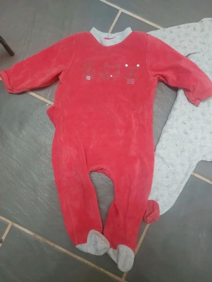 Vends lot de 2 pyjamas 1 pièce 1 rouge 1 gris Marque mots d'enfants 12 mois #juhjuh12mois
