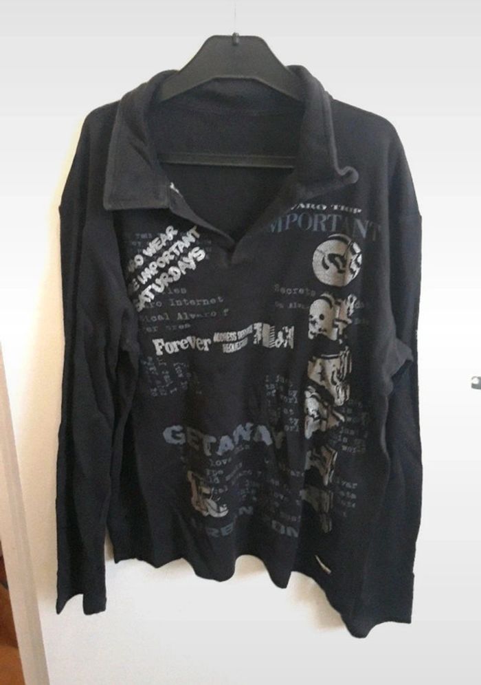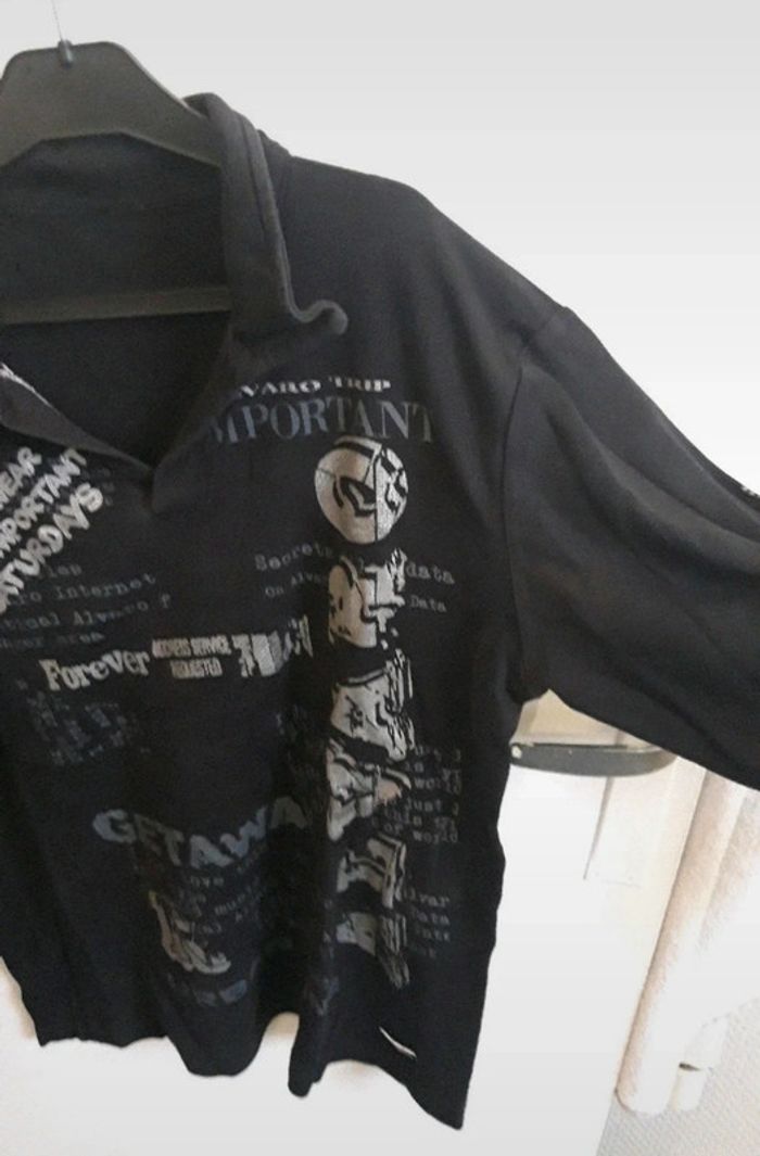 Vends polo manches longues noir Col V Ecritures grises Taille L Alvaro #juhjuhHl