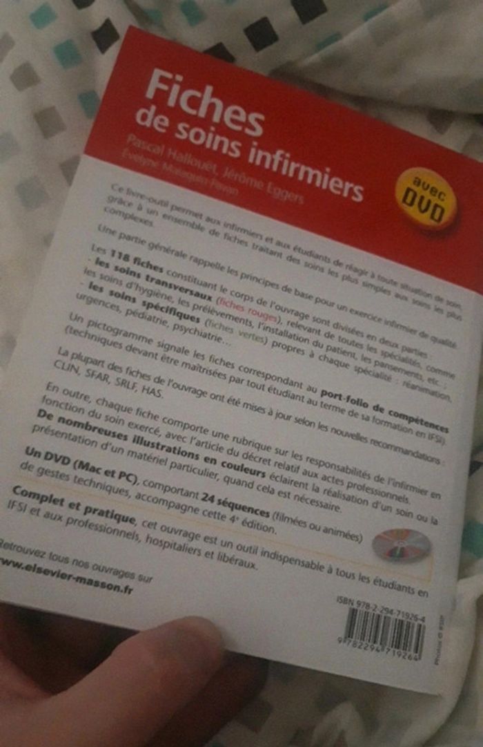Vends fiche de soins infirmiers Avec son DVD 4eme édition Elsevier Masson Excellent état #juhjuhlivre
