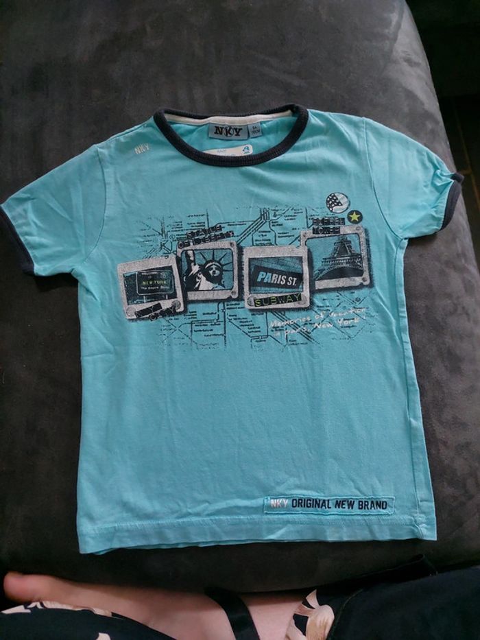 Vends t shirt bleu turquoise NKY 5 ans Très bon état Motif paris New York #juhjuh5ans